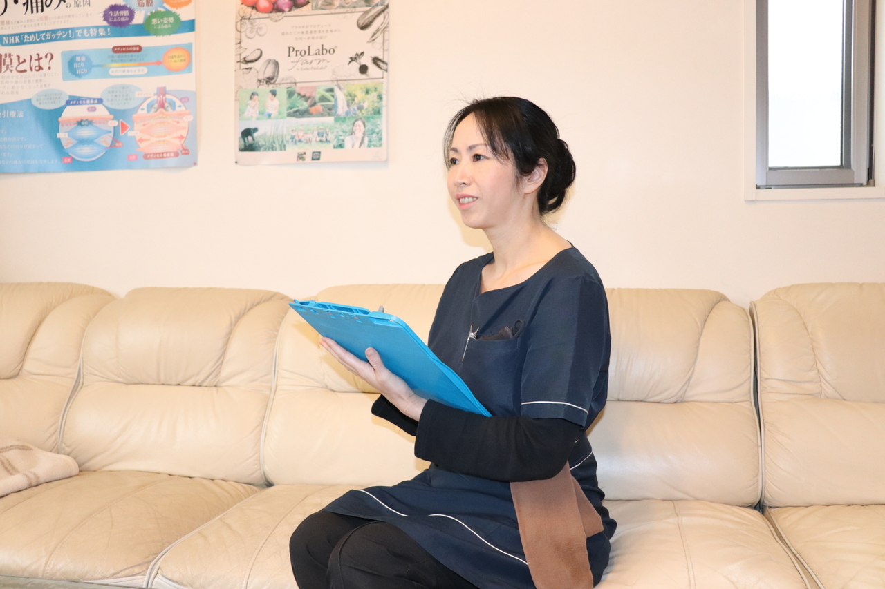 痛みの治療は院長先生に診てもらい、全身の疲労や癒しは国井さんに整体してもらっています。昔からお世話になっていて、頼りにしています。体の事だけでなく栄養や内面美容の知識も豊富なので体中の外から中までケアしてもらっています。